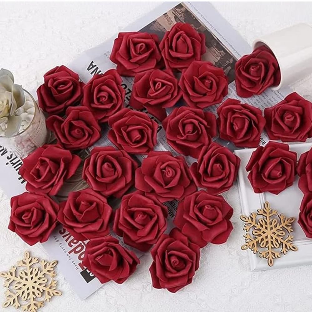 Rose Artificial Flowers for Decoration,Artificial Flower,Flower for Hair Styling,Flower for Pooja, for Home Decor DIY (24pcs - Dark Red Big Foam Rose)