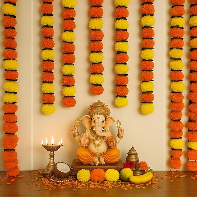 Celebrate India’s grandest festivals like Diwali, Navratri, Pongal, Onam, Ganesh Chaturthi, Ugadi, Makar Sankranti, Durga Puja, Vishu, and Karthigai Deepam with elegance and color. Easy to hang, maintain, and store, this artificial marigold garland is a must-have decorative piece rooted in culture and convenience.
