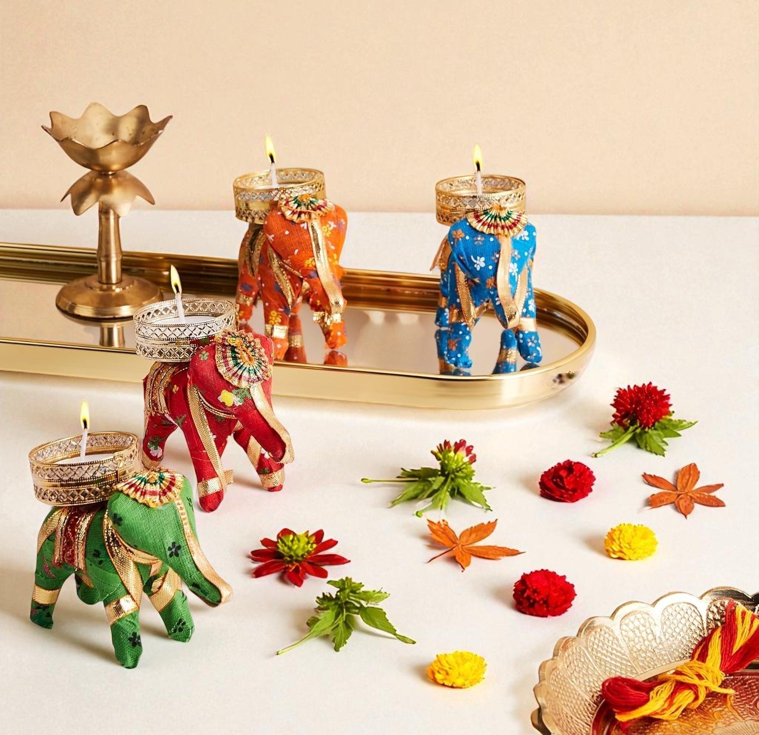 Tea Light Candle Holder Elephant Design Handmade in India Decorative Diya Holder For All Festivals and Celebrations [Set of 4]